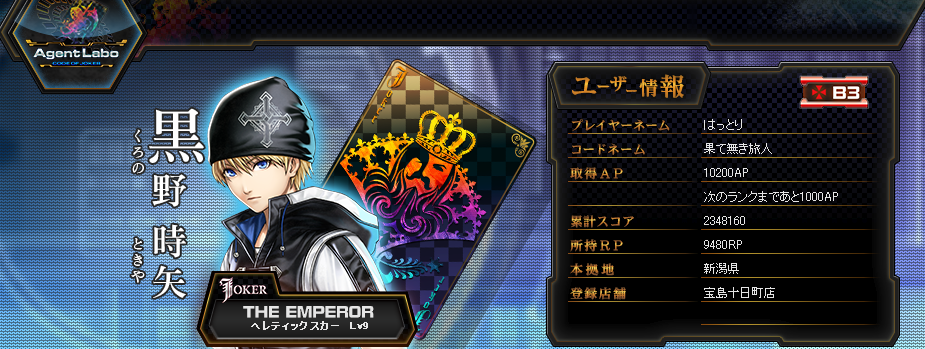 キャラは黒野君を使っている。