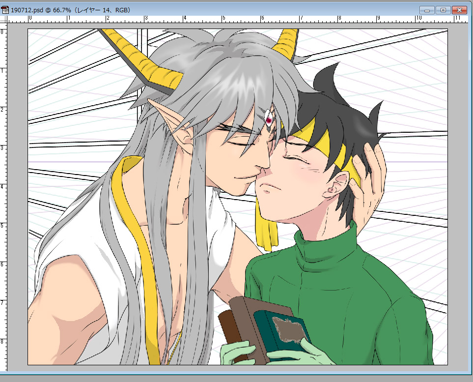 こんな真面目に背景描いたのも久し振り…。