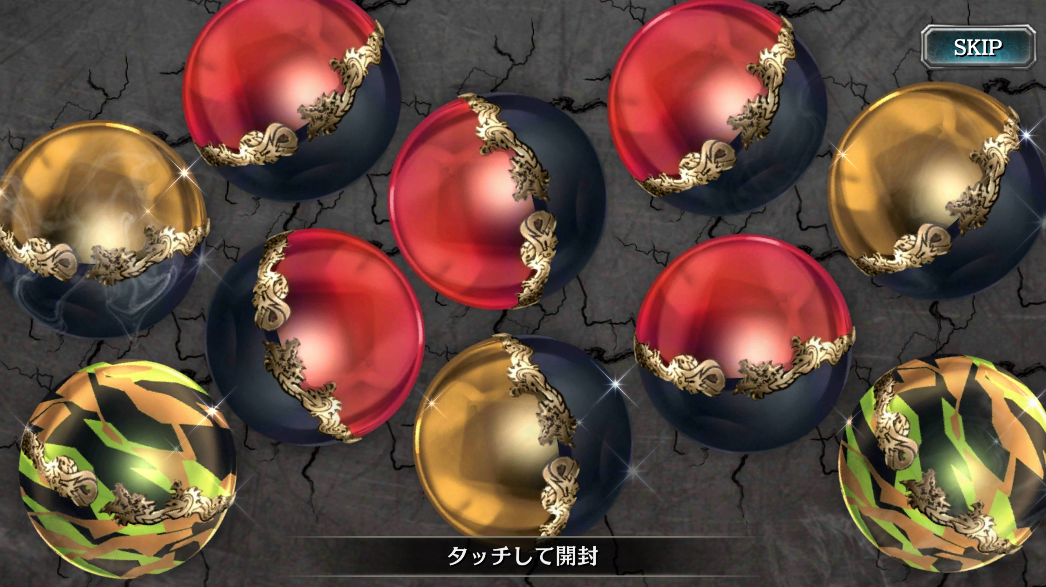 それまではレインボーか迷彩、どっちもSSRが入ってる玉だったんだけど、最近はSSRの中でも新規実装されたやつは迷彩柄、それ以外のSSRはレインボーなの。