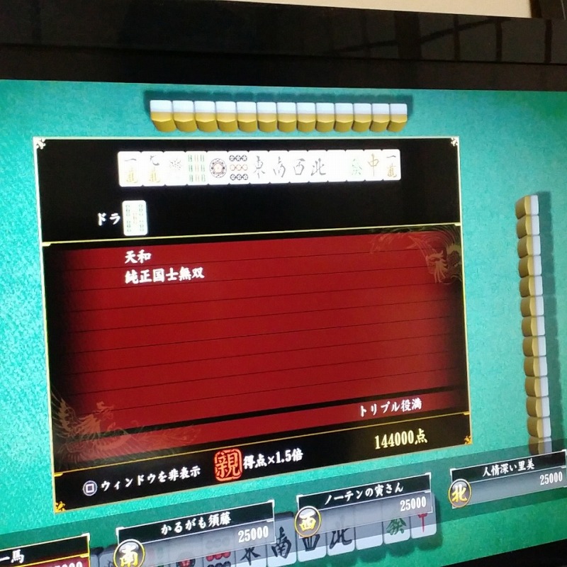 ゲーム内麻雀とはいえ10年くらいは龍が如くやってるけど、いや龍が如く以外でやったことある麻雀も含めて生まれて初めてだなぁ。