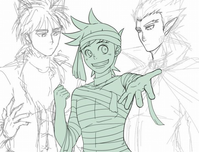 衣装は「狼男 コスプレ」、「吸血鬼 コスプレ」でぐぐって描いたから一般的なイメージから外れてはいない…はず。