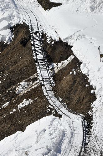 長野方面の山際のとこで、線路だけつながってる様子。
